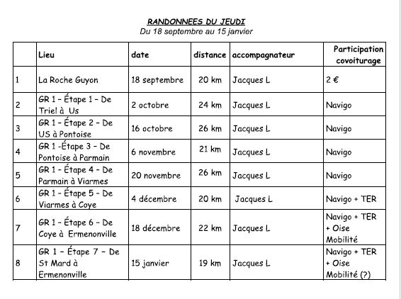 En savoir plusProgramme des randonnées du jeudi de septembre 2025 à début janvier 2026