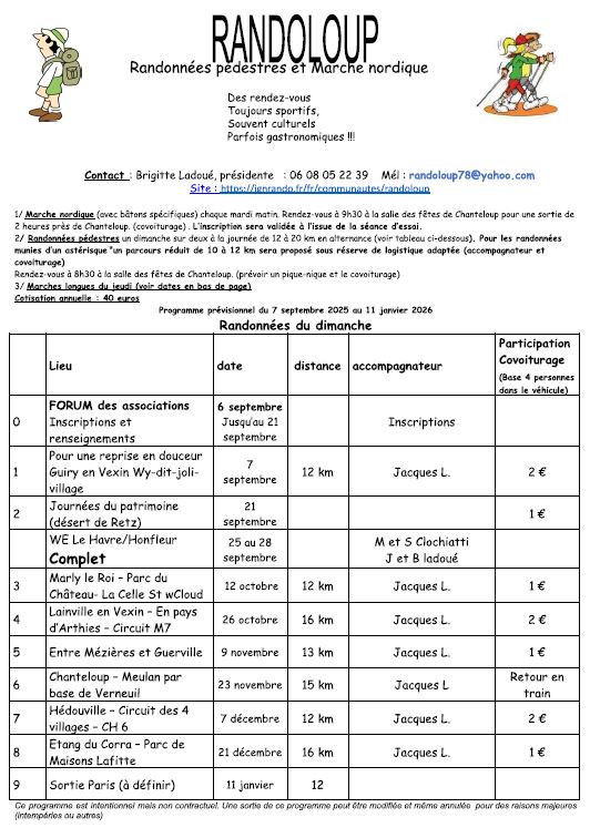 Programme des randonnées de septembre 2025 à début janvier 2026 - Page 1/2 - Randonnées du dimanche
