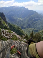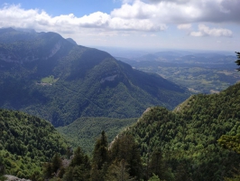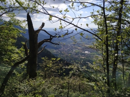 (2) Cette sente en lacets rejoint « la Pointière » (990 m). Prendre à gauche la route forestière construite à flanc de falaise, en direction du « belvédère du Pertuis ». Dépasser le « Pas du Pertuis » en restant sur la route forestière goudronnée, se changeant occasionnellement en une piste pierreuse.