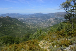 Au carrefour, suivre « Panorama » par le sentier qui monte à droite. Point de vue à 360° et table d’orientation. Redescendre par le même chemin. De retour au carrefour, prendre le sentier en face direction « Saint-May ». Ne pas suivre le sentier central qui mène au plateau de Boeuf. Suivre le sentier qui devient une piste sans la quitter. Aller toujours tout droit pour atteindre le col de Bascoulet.