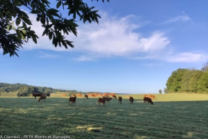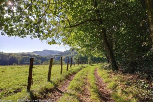 Penser à bien refermer les clôtures et les barrières (cf points 21 et 25).Variante (3km) au point n°7 : Partir sur le chemin de gauche. Le poursuivre jusqu'à une route.A la route, la traverser et prendre le chemin en face. A la prochaine intersection, prendre sur la droite.A l'intersection, prendre de nouveau sur la droite. Poursuivre jusqu'à une route.A la RD 30, la prendre en montant sur la droite sur environ 200 mètres et s'engager dans le chemin de gauche. 10 mètres plus loin, monter par la droite à travers le reboisement jusqu'à tomber sur un chemin.Au chemin, prendre sur la gauche. A la patte d'oie suivante, continuer sur le chemin de gauche. Le suivre toujours tout droit.Laisser le chemin de droite et poursuivre tout droit.Intersection, prendre à gauche le sentier.Fin de la variante au point n°8.
