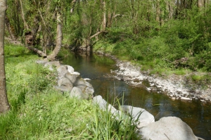 Traversez la passerelle. Continuez sur le chemin qui va longer le ruisseau au milieu des bois.