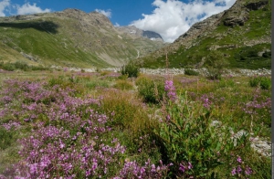 En remontant le cours de l'Arc, c'est une immense plaine qui s'ouvre à vous. Les arêtes du Mulinet veillent en sentinelles. Les glaciers rayonnent comme une lointaine et fragile Antarctique. Les fleurs s'épanouissent et les couleurs explosent. Plus loin, les gens de la terre ont commencé les foins. Ce que vous voyez n'est pas seulement l'ouvrage de la nature. Ce paysage, ces anciennes granges et ces vieux chalets, les hommes les ont façonnés à la sueur de leur front. Ils traduisent bien la rudesse de la vie humaine en haute altitude.