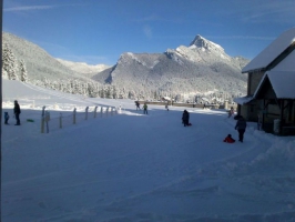 Après avoir traversé la route, vous allez contourner les pistes de ski alpin pour arriver au sommet du premier téléski et à l’arrivée du parcours. Possibilité de se restaurer.