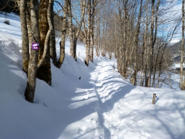 1/ En laissant les caisses des remontées mécaniques derrière vous, prendre la route en direction de la sortie du Planolet, puis prendre à droite au niveau du poteau « Le Planolet ». Descendre sur le large chemin jusqu’à la route, la traverser (attention route passante) et prendre tout droit sur le chemin du Peysset, suivre le chemin qui vous fera passer dans le hameau puis dans les bois. Vous arriverez ensuite dans un espace plus ouvert avec des prés jusqu’au panneau Longerey. 2/ A ce niveau-là prendre à gauche sur le chemin jusqu’à la route. Longez-là sur une trentaine de mètres, et reprendre une route non déneigée, qui monte à gauche.3/ Après une ruine, elle réalise un virage à gauche, puis repart à droite en lisière de forêt. Continuer par la piste forestière sur la gauche. Plus loin, elle traverse le ruisseau de La Grenaz et rejoint une autre route, non déneigée.4/ Au croisement de « La Draye », prendre le chemin qui descend à droite. Après les granges, on retrouve une autre route, qu’il faut suivre jusqu’au croisement avec la route départementale.5/ Traverser la route avec prudence, et continuer sur le chemin qui descend à droite. Au croisement suivant, emprunter le chemin de droite, jusqu’à l’orée du bois, puis celui à droite, pour traverser le ruisseau de La Grenaz, et remonter le versant opposé. Traverser la prairie pour retrouver un chemin agricole, qui ramène à St Philibert. Après le gîte, emprunter le passage à gauche pour rejoindre l’église.1a/ En laissant l’église de St Philibert dans le dos, emprunter la route à droite en direction des Arragons. La quitter dans le virage à droite, pour continuer tout droit par le chemin agricole. Au croisement de « Longerey », emprunter le même chemin qu’à la descente pour rejoindre le Planolet ou reprendre au point 2 l’itinéraire (si départ depuis St Philibert 1a/).