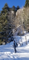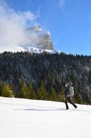 (1) La balade n’est pas difficile mais peut s’avérer délicate en bordure de ravin - surtout avec des enfants - ne vous écartez pas du balisage. (2) La route s’arrête au parking situé à l’épingle 1200m sur la route du Col du Coq. Là, deux possibilités : 2a / Rejoindre le Col du Coq par la route fermée l’hiver jusqu’au Col (durée 1h - dénivelée +250m) 2b / Prendre le sentier du Tour de Pays (balisage rouge et jaune, direction Col du Coq - les Ayes) pour rejoindre la route avant le Col, poursuivre jusqu’au Col (durée : 1h - dénivelée +250m). (3) De là, prendre à gauche la piste forestière (balisage raquette). Après avoir dépassé l’école d’escalade du Rochas Blanc (sur votre droite), prendre le chemin balisé qui monte raide sur la droite, puis poursuivre la montée en pente douce, en forêt, qui vous conduira vers la crête ; de là, vue sur le Bec Charvet et sur la Combe du Manival (prudence en bordure de ravin, surtout avec les enfants - risque de corniche - ne pas s’écarter du balisage). Descendre sur votre gauche en restant en forêt et rejoindre un chemin assez large et facile, qui vous ramène vers l’école d’escalade.