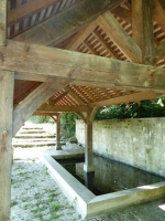 Situé au nord du hameau de Gascourt, ce lavoir est alimenté par un affluent du ru Popelin. Il est construit vers 1862-1864 et fait l'objet de travaux en 1876.Sa construction tardive explique qu'on ne le trouve pas représenté sur le cadastre napoléonien de 1823. Un peu à l’écart, en pleine nature, deux accès sont possibles pour s'y rendre : un côté village et un autre côté forêt. Restauré en 2004, seul le pavage et les pierres sont d’origine. Il reste un exemple typique, avec le lavoir de Rocquemont, des lavoirs modestes de petit village car il a gardé sa forme d’origine : un seul bassin est disposé en longueur dans le sens de la source. Il est entouré d’un bord pavé et trois côtés sont des pierres à laver. Le bassin s'allonge le long du mur, formant un "P" : c’est par cet endroit que l’eau pénètre. Le toit, assis sur une structure en poutres de bois dont un des piliers repose au milieu du bassin, est légèrement décalé. Ce toit à deux pentes est couvert de tuiles plates modernes.