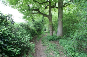 3) Traverser le chemin qui sert de digue aux marécages des deux côtés. Tourner encore à gauche pour suivre un chemin qui serpente entre le marais en bas et le bois en contre haut. Rester sur ce chemin jusqu’à la barrière de sortie au croisement du chemin dit de « Gascourt à Lassy ».