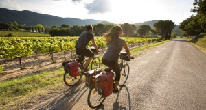 Sillonner la campagne provençale à vélo, entre vignes et oliveraies pour découvrir deux « villages de caractère du Var » : Cotignac et Entrecasteaux.