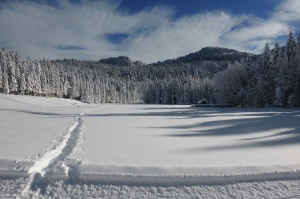 Le parcours est commun au démarrage et à la fin avec le numéro 4. Au départ du site nordique de la Ruchère, vous débutez dans la forêt à droite de l’entrée des pistes de fond.La piste large serpente jusqu’à revenir près des pistes de fond avec de plus étroits passages en sous-bois. Vous longez la limite de forêt communale puis traversez les pistes pourrejoindre le sentier large du belvédère. Le point de vue est splendide sur la vallée. Vous revenez sur quelques mètres pour reprendre à droite la boucle avec une petite montée quiredescend rapidement sur la gauche quittant le parcours n°4 et rejoignant la prairie des Riondettes. Attention aux franchissements des pistes. Admirez ce splendide plateau pour rentrer à nouveau en forêt. Un passage mythique vous emmène traverser la belle prairie de la Morte. Vous vous enfoncez dans le bois en face et remontez sur la droite poursuivre la boucle tranquillement jusqu’au Cernay. La descente sur le foyer emprunte le nouveau tracé de GR pour terminer en beauté avec un point de vue secret sur les falaises des Eparres et du pas Dinay.