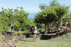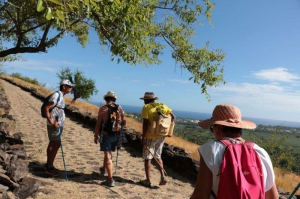 ITINERAIRE Cette balade historique, vous fera découvrir un des plus vieux chemin pavé de Saint-Paul. Ce sentier très entretenu vous offrira des fenêtres magnifiques sur la baie de Saint-Paul. Pour vous y rendre, prenez la route du Tour des Roches (celle qui longe le moulin à eau). Pour vous repérer vous aurez des champs de manguiers et quelques endroits où vous pourrez garer votre voiture. Marchez un peu jusqu’à l’arrêt de bus ’Bouillon" qui se situe en face du snack " allée des cocos". Vous ne pouvez pas vous tromper, un panneau en bois vous indique la direction à prendre pour rejoindre le chemin pavé Bellemène. Longez la boutique et enfoncez-vous dans le lotissement, suivez toujours les panneaux et ne quittez plus le chemin "blanc" jusqu’à l’entrée du sentier.Après la dernière maison en taule, vous voici sur les traces de nos "zabitants", où "charette Boeuf", ou autres transports, empruntez cette route pour se rendre à Bellemène. Tout le long de votre ascension vous serez entourés de plantes tropicales (le zatte, flamboyant, tamarin péi, le pied jujube...) et de vues aussi magnifiques sur la baie de Saint-Paul et nos belles montagnes. Arrivez au bout du sentier pavé, sur votre droite se trouve une belle cabane dans les bois ! Elle offre une belle fenêtre sur le littoral saint-paulois. Empruntez le même chemin pour le retour ! LOUPE HISTORIQUE En 1719, trois sentiers reliant les Hauts de Saint-Paul furent pavés sous Deforges-Boucher, pour chevaux et "boeufs portant". Le chemin pavé Bellemène, autrefois appelé montée d’Hibon était encore fréquemment utilisé jusque dans les années 1970.L’histoire ou la légende raconte que Marie Elixène de Lanux, muse du grand poête Leconte de Lisle, empruntait ce chemin pour se rendre à Saint-Paul. Et ses vers du poète nous viennent aux lèvres: "Sous un nuage frais de clair mousseline, tous les dimanches au matin, tu venais à la ville en manchy de rotin, par les rampes de la colline". L’ascension, qui dure en moyenne 30 à 40 minutes, vous permet d’arriver à Bellemène, dans les Hauts de Saint-Paul et vous offre par ailleurs progressivement une splendide vue sur le littoral de Saint-Paul, depuis le Cap La Houssaye jusqu’à la ville du Port. Aujourd’hui, ce beau sentier pavé est entretenu par l’Association Sportive et Culturelle - Loisirs de Bellemène. Ils entretiennent ce beau patrimoine réunionnais et le refait vrivre à travers des expositions d’objets qui ont servis à la construction du chemin pavé. PRATIQUE : de bonne basket, une casquette, de l’eau et la crème solaire ! Nous vous conseillons d’emprunter ce sentier par un temps couvert, car il n’est pas très ombragé. QUOI FAIRE AUX ALENTOURS ? Nous vous conseillons de vous arrêter à l’Auberge du Pavé en arrivant au bout du sentier pavé, pour un succulent déjeuner, pour après reprendre le sentier pour une balade digestive !