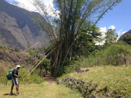 Encore 2 bonnes heures et vous rejoindrez le Haut de la forêt de Sans-souci, donc, pas d’inquiétude il vous reste une heure environs pour gagner le quartier du même nom desservi par des bus en direction de la gare de St Paul. Par le Sentier Scout : Entre Ilet à Malheur et Ilet à Bourse, vous trouverez cette bifurcation qui vous ramènera vers la route du Col des Boeufs. De Mai à Août prenez des vitamines avec les nombreux goyaviers qui vous attendent sur le début de cette longue montée vers le cirque de Salazie. Les points de vues sont impressionnants sur les quelques passages vertigineux à flanc de falaise, en passant sur la crête des Deux Fesses juste après avoir remonté le long du Grand Rein. Cette sortie vous plongera une dernière fois au coeur de la forêt humide d’altitude, véritable feu d’artifice végétale que ce jardin endémique, avant de reconnecter sur la route du Col des Boeufs. Dos d’âne-sentier du Bras de Ste Suzanne : Sortir de Mafate par ce sentier ne vous laissera pas indifférent. Depuis deux bras, poursuivez après l’air de stationnement des 4x4, puis traversez la rivière pour rejoindre le rempart de Dos d’âne (rempart de droite dans le sens d’écoulement de la rivière). Vous avez environs 800m de d+ qui vous attendent sur un sentier très technique, comportant plusieurs mains courantes et échelles. Après minimum deux bonnes heures de montée vous déboucherez dans un chemin étroit avec des habitations sur votre gauche. Ce chemin reconnecte ensuite sur une petite rue, où il vous faudra prendre à droite en direction de l’église de Dos d’âne. Une fois l’église sur votre droite , vous trouverez 100m plus loin la route principale où vous accéderez à un arrêt de bus.