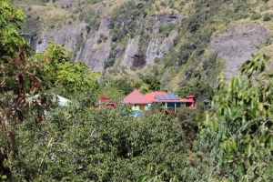 Vous arriverez bientôt au captage des Orangers, puis à une intersection où vous prendrez à gauche en direction d’Ilet des Lataniers.
