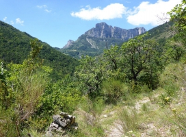 Prendre le sentier bien tracé à droite. Il s’élève en pente douce à flanc de coteau, en balcon sur la vallée de la Courance, vers La Chaudière.
