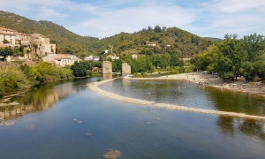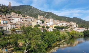 Vous arrivez donc à Roquebrun, « le Petit Nice » de l'Hérault comme on l'appelle ici. Pourquoi ce surnom ? Outre ses palmiers et ses maisons aux couleurs ocre qui rappellent la Côte d’Azur, le village bénéficie d'un microclimat : orangers, citronniers et autres arbres à agrumes fournissent de beaux fruits en plein cœur de l'hiver, tandis que les mimosas égayent les paysages héraultais en février. Cette végétation se découvre d’ailleurs en visitant le Jardin Méditerranéen, au pied des ruines de la tour de guet carolingienne. Depuis le haut du village médiéval, s’admirent le vignoble, l'Orb et le pont qui l'enjambe depuis 1870. Là encore, l’accès au vieux village est assez difficile pour le cycliste en raison de la typologie des lieux. Après la visite de Roquebrun, il vous reste un peu plus de 10 km à parcourir. Continuez à suivre les méandres du fleuve sur près de 5 km par la D19.