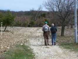Au lieu-dit <strong>Champs Tortel (alt. 480m)</strong>, l’itinéraire emprunte le GR429, balisé en blanc et rouge. De là, il est possible de rejoindre, hors circuit, les belles ruines du prieuré (environ 15mn aller-retour en suivant au sud le GR429). Au retour, reprendre la petite route à droite en suivant le balisage du GR. Plus loin, quitter la route et, après une citerne semi-enterrée, trouver le croisement de <strong>L’Oulette <strong>(alt. 552m)</strong>.