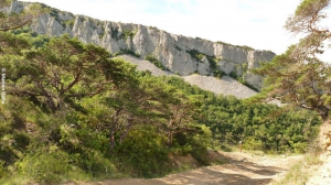 Monter sur le chemin caillouteux jusqu’au "Col de la Verne" (alt. 565m), de là, admirer la face nord du Rocher des Aures et, à son sommet, l’ancien oppidum celte Aeria (limite des territoires Voconces et Cavarres).