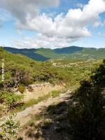 Suivre la direction Gîte de Fontlargias en passant sous le Rocher des Aures, versant sud, par le « sentier des invasions », ancienne voie romaine qui débouche sur une petite route. Marcher environ 150m sur le goudron et rejoindre le "Gîte de Fontlargias" (alt. 560m).