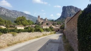 Vous traversez alors un plateau en faux-plat descendant sur environ 6 km, dominé sur la droite par le Mont Saint-Baudille et son antenne caractéristique. La route est assez dégradée. Puis vous entamez une longue portion de descente jusqu'à Montpeyroux. Au fur et à mesure, vous découvrez face à vous la plaine héraultaise que vous dominez, où les vignes remplacent le causse.