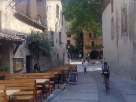 Votre départ s’effectue à la Maison du Grand Site au pont du Diable, qui marque l’entrée des gorges de l’Hérault. Après le pont, vous suivez les gorges sur 3 km pour rejoindre Saint-Guilhem le Désert. Faites le tour du village par la petite route qui longe le Verdus de part et d’autre. Saint-Guilhem-le-Désert abrite depuis le IXème siècle l’abbaye de Gellone, joyau de l’art roman languedocien. Celle-ci est, comme le pont du Diable, inscrite au patrimoine mondial par l’UNESCO au titre des Chemins de Saint-Jacques-de-Compostelle et constitue un jalon emblématique du Chemin d’Arles. La place principale, à l’ombre de son immense platane, avec ses terrasses et sa fontaine, est superbe !
