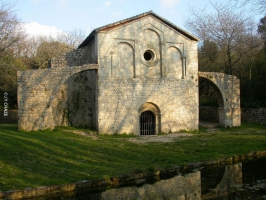 La Garde-AdhémarPerché sur un rocher calcaire, le village de La Garde-Adhémar offre un belvédère sur la vallée du Rhône, de la plaine de Pierrelatte jusqu’aux montagnes du Vivarais. Sa qualité de place forte médiévale marque beaucoup la construction du village. Enserré dans un double rempart pourvu de tours, il abrite les vestiges du château féodal, l’église Saint-Michel et la chapelle des Pénitents Blancs, occupée par la confrérie jusqu’au 19e siècle. L’église Saint-Michel, originale par sa double orientation avec deux absides, est un très bel exemple de l’architecture romane provençale.Le Val des Nymphes (monument historique)Le nom de ce site, imprégné de mystère, témoigne de la présence d’un culte antique aux Mères nymphes, divinités des eaux et de la fécondité. En raison de la présence de sources permanentes, le site attire dès le Moyen Âge un important habitat et quatre églises. Seule fut conservée l’église romane Notre-Dame édifiée au 12e siècle par les moines de Tournus. L’abondance des pierres de taille marquées de signes lapidaires, la qualité stylistique de son décor et son implantation au fond d’un vallon contribuent à sa singulière beauté.La tour de Clansaye (monument historique)Le château de Clansaye mentionné dans les textes dès le 13e siècle, ne conserve que son donjon de plan quadrangulaire. Construit en pierre calcaire sur un éperon rocheux, il possède un contrefort sur chacune de ses façades ce qui lui confère une forme très caractéristique. Découronné en 1793, le donjon est orné d’une statue de la Vierge en 1858.