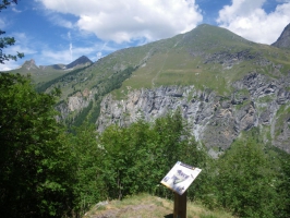 -Départ du sentier 250 m après la porte du Parc national de la Vanoise, sur le chemin du lac de la Plagne, à droite.
