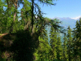 Rejoindre le plateau des Bauches (1 770 m) . A l’entrée de la clairière prendre le sentier qui revient plein Est. Quand il rejoint l’arête d’où l’on voit la vallée de Peisey, il devient raide jusqu’au sortir de la forêt.
