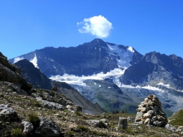 Première journée : montée jusqu'au refuge du col du Palet (2 600 m) par le GR5. Lacs de la Plagne (2 144 m) et de Gratalu (2 530 m). Compter 4 heures de marche. Seconde journée : juste en amont du refuge vers le sud, passer le col de la croix des Frêtes (2 647 m) et descendre dans les alpages jusqu'au petit lac du grand plan (2 500 m). Quitter le chemin et partir plein Nord-Ouest en partie plate jusqu'à croiser au pied de l'aiguille noire le chemin qui vient de Champagny et monte au col de la Grassaz ( 2 637 m). On redescent par le vallon des Aimes (lac Verdet, 2 520 m)). On fait quelques centaines de mètres sur le GR5 à la redescente et on bifurque à gauche pour aller passer la seconde nuit au refuge d'Entre-le-lac. Redescente à Rosuel en passant de l'autre côté du Torrent (rive droite. Plan de la Plagne (2091 m), Le Varchey, la Cascade, La Guraz). Difficulté : une portion de chemin non tracé. Ne pas se lancer par temps de brouillard.