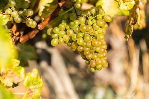 Quitter la piste pour un sentier descendant à gauche (passages glissants). En bas, virer à gauche sur une piste que l’on suit sur 400 m. Au poteau, aller à droite et monter sur la colline pour retrouver des vignes. Partir en face entre les vignes et, au bout, suivre à gauche le cheminement pour retrouver une piste. Amorcer la descente, marcher 500 m, puis traverser une piste. Continuer en face 400 m encore et rejoindre une route.