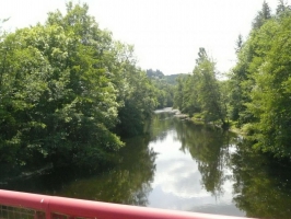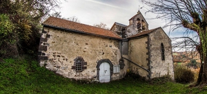 4/ La traverser et s’engager sur le chemin descendant le long du talus. À la première fourche, obliquer à droite, puis à la seconde se diriger à gauche. Continuer pour atteindre une route. La suivre à droite sur 300 m. À hauteur d’une entrée monumentale, tourner à droite dans le chemin le long d’un haut mur. Contourner la chapelle (PP1 : chapelle Saint Valentin) et poursuivre en descendant jusqu’à une route. La traverser (attention ! mauvaise visibilité). Descendre en face. À la route, aller tout droit et traverser le hameau de Lavaux. Emprunter la passerelle sur la Sioule, puis suivre la route à droite pour rejoindre le point de départ.
