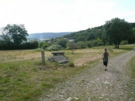 2/ La prendre à droite, et la suivre dans le hameau (Montmartin) jusqu’à un croisement (fontaine, lavoir, aire de pique-nique). Tourner à droite pour rejoindre une petite route à droite dans le hameau de La Croix. L’emprunter, et au croisement (croix), suivre la route tout droit, puis le chemin montant vers un bois de résineux. Bifurquer à droite en lisière jusqu’à un chemin transversal. Le prendre à droite. Descendre le chemin principal en ignorant les chemins latéraux. À l’intersection en T virer à droite et continuer jusqu’au carrefour à l’entrée du village de Tableix.