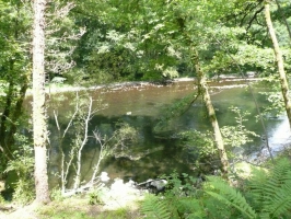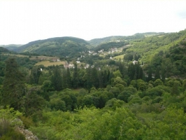 3/ Aller à droite et traverser le village en suivant les rues de Laschamps puis du Chabagnat. Monter par la route. Prendre le premier chemin à gauche après le panneau de sortie du village et, à l‘intersection, descendre rapidement jusqu’au confluent de deux ruisseaux. Poursuivre vers l’aval, franchir deux passerelles, et remonter jusqu’à la route (D227).