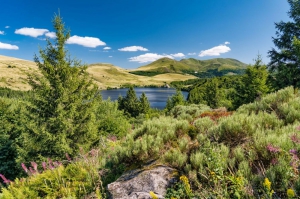 3/ Aller à gauche sur environ 300 m, clôture à main droite, puis descendre à droite. Prendre le passage aménagé et l’escabeau puis suivre la piste à gauche à travers l’estive. Passer la clôture et continuer jusqu’à l’escabeau. Le franchir , monter entre les clôtures , descendre en lisière du bois. Ignorer un chemin à gauche pour rejoindre un large chemin. Virer à gauche. Au lac bifurquer à gauche, entrer dans le bois, monter un sentier en lacet surplombant le lac (vue sur le lac de Guéry). Descendre le sentier aménagé et rejoindre le point de départ par le chemin longeant le lac.
