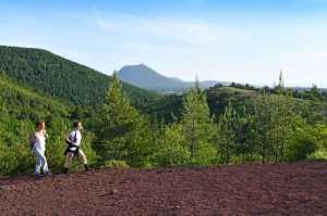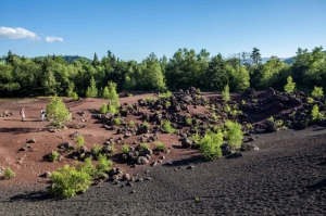 Au pied d'un des plus célèbres volcans de la Chaîne des Puys, le puy de la Vache, on observe divers phénomènes liés aux cheires volcaniques au travers de la végétation, des carrières de basalte, des étangs et de magnifiques vues.