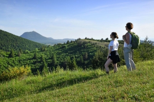 Vue sur des Puys, dont ceux égueulés de La Vache et de Lassolas.
