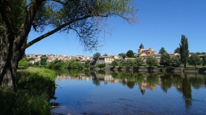 2/ Tourner à gauche, longer le pont et obliquer à gauche rue de la Marine. La quitter à 50 m à gauche, au virage en épingle. Sans passer sous le pont, accéder au sentier de la berge par un passage entre l’arche et la haie. Partir à droite jusqu’au bout du quai, remonter par la droite pour retrouver la rue de la Marine, la remonter, tourner à droite rue Sous le Pont ou rue de l’Ancien Pont en Bois. Monter jusqu’à l’église Sainte-Martine.