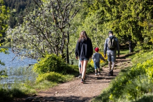 2/ À la patte d’oie, aller à gauche. Ensuite, ignorer tous les chemins de gauche et longer le lac.