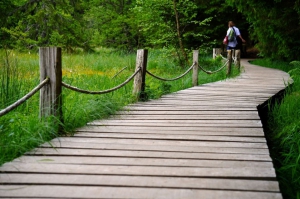 3/ Aux barrières de protection, laisser à droite la tourbière (panneau d’information). Continuer en bord de lac.