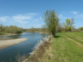4/ Continuer tout droit, franchir un autre carrefour (croix de fer) et, arrivé devant un mur, (sur la gauche aller-retour possible pour visiter l’église de Vinzelles - 15 mn) partir à droite jusqu’à un carrefour en T. Prendre à gauche. (Sur la droite, possibilité de raccourci vers le point 4 en longeant l’Allier). Au premier chemin bifurquer à droite et rester à droite jusqu’à un croisement proche de l’Allier.