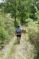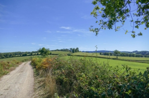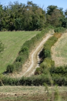 2/ Tourner à droite ; continuer tout droit sur 1 km jusqu'à une route (D517). Prendre aussitôt à gauche un chemin qui descend, franchit un ruisseau puis remonte. Poursuivre en ignorant les chemins à droite jusqu'à un embranchement en T.