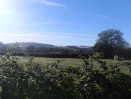 2 - Emprunter la route vers la droite sur 100 m et tourner à gauche. À l’intersection, continuer tout droit sur 30 m et emprunter un chemin de terre à gauche. À la fourche prendre à droite. Au carrefour suivant, continuer tout droit et descendre en sous-bois jusqu'au ruisseau. Passer le pont et remonter en face par une piste étroite en négligeant des traces pentues à gauche et un chemin descendant à droite. Après un virage serré, monter sur le plateau pour atteindre le village de St Fargeot et la route D80.