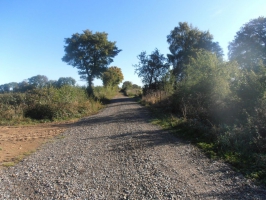 Départ - Du panneau de départ situé sur le terre-plein le long de l'église, se diriger vers la D80, la traverser et poursuivre en face jusqu'à une intersection en T. Prendre à gauche sur 1500 m jusqu'à un carrefour près d'un vaste hangar.