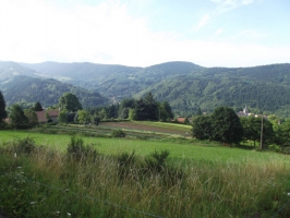 2/ Monter le chemin herbeux en face entre 2 clôtures et rejoindre la Moronie. À la route, continuer à monter sur la gauche (vue à gauche sur Valcivières). À Chabreyssat, continuer à monter sur un chemin empierré jusqu’à une route. Tourner à droite vers les Versades (vue sur la plaine d’Ambert à droite). Aux petites Versades, continuer sur la route jusqu’aux grandes Versades (vue sur le col des Supeyres et les monts du Forez).