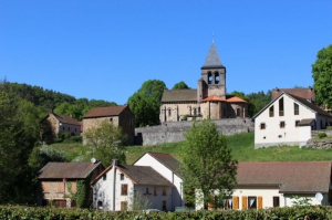 - Vue sur le village de Montfermy et son église romane (fresques du XIVème siècle).