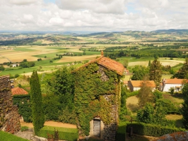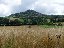 5/ De l’église - signalétique pédagogique en lave émaillée, historique sur la Reine Margot - (possibilité d’aller-retour au sommet du site de la vierge d'Usson, vue à 360°), descendre dans le village. À la sortie d'Usson, descendre à droite par la route. À la dernière maison, continuer à gauche. Au carrefour aller à gauche. Dans une courbe, prendre à gauche un large chemin empierré puis herbeux jusqu'à une vigne.