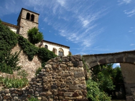 3/ Devant l’école communale tourner à gauche. Traverser la place de la Chapelle. Poursuivre par la rue des Granges et le chemin des Caves (les entrées des caves de Saint-Julien). Tourner à droite sur la route jusqu'au croisement avec la D631. Prendre à gauche sur 30 m et descendre un petit chemin en direction du cimetière de Montaigut-le-Blanc. Passer le pont et remonter la rue de l’Église puis virer à gauche avant la porte monumentale (vue panoramique depuis le parvis de l’église) pour redescendre jusqu'à la D996.