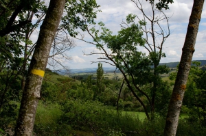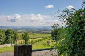 - Vue sur les monts du Livradois, Deves, le signal du Luguet, le Cézalier, la vallée de l'Allagnon, les terres rouges et les coteaux de Boudes.