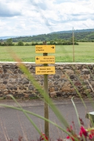 4/ Au retour du hors circuit, partir sur la droite (le signal du Luguet et le Cézallier) et au carrefour en T, se diriger vers la gauche sur le chemin caillouteux. Au carrefour, descendre le long et large chemin à gauche (la vallée de l'Alagnon) jusqu'au carrefour en T. Tourner à droite (les terres rouges et les coteaux de Boudes) vers Augnat. À l’entrée du village, ignorer la rue du lavoir. Prendre la rue des Pradeaux et à gauche, descendre la rue de l’Ancienne Forge jusqu'à la place de l’Église. Monter devant l’église et la contourner par la gauche, rue Sainte-Marthe puis à gauche, rejoindre la place du Cézallier. Rejoindre la route et bifurquer à gauche vers la place de la Mairie.