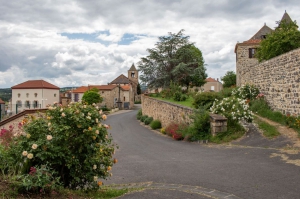 3/ Traverser la place du Puits pour aller vers l’église. La contourner pour revenir sur la route principale (Maison forte du XVIe siècle) et prendre la direction de Perpezat (vue sur les Monts du Livradois). Traverser le hameau, passer le long des lavoirs et sous l’arche en pierre. À la fourche, monter à gauche. À une suivante (panneau variante VTT) continuer à gauche la grande montée sur le plateau jusqu'au carrefour. (Aller-retour hors circuit, 100 m tout droit pour voir le lac temporaire).