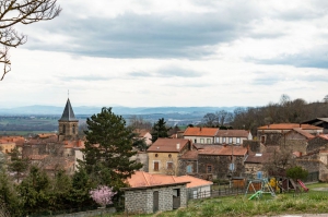 4/ Partir à droite jusqu'au village de Saint-Gervazy, monter le chemin goudronné dit du Moncelet à gauche, en face du pont (bel affleurement de terre rouge. À mi-côte, vue sur le village d'Augnat et la vallée de la Couze d'Ardes). Continuer le chemin tout droit jusqu'au croisement.